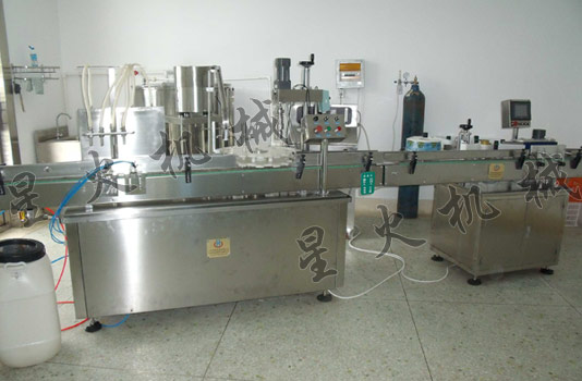 自動理瓶灌裝旋(軋)蓋生產線主要適用于制藥、日化、食品、化工、農藥等行業的液體自動灌裝,采用直線式灌裝,適用于不同材質的規格及不規格瓶。該機結構簡單,性能穩定,維護保養方便。無瓶停灌功能,可選購,與物料接觸部件均采用優質不銹鋼制作,符合GMP標準。