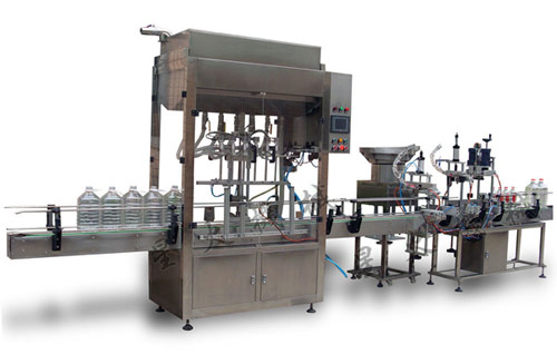 全自動食用油灌裝生產線由直線型自動灌裝機及自動上蓋機、臺式旋蓋機等設備組成,全線自動完成灌裝、旋蓋、貼標、噴碼等過程。整套生產線全不銹鋼材質,機器主要部件均采用國內外知名品牌配件,保證了機器的穩定及可靠性,在國內各大食用油生產企業使用反饋結果表明,運行穩定,維修率低,灌裝精度高,操作及維護更加方便,更人性化。