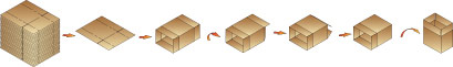 XH-CE30 成型紙箱板水平進入,便于整個成型動作連貫,實現紙箱高速成型,成型后的紙箱通過翻轉機構后開口朝上進入裝箱工位便于裝箱。